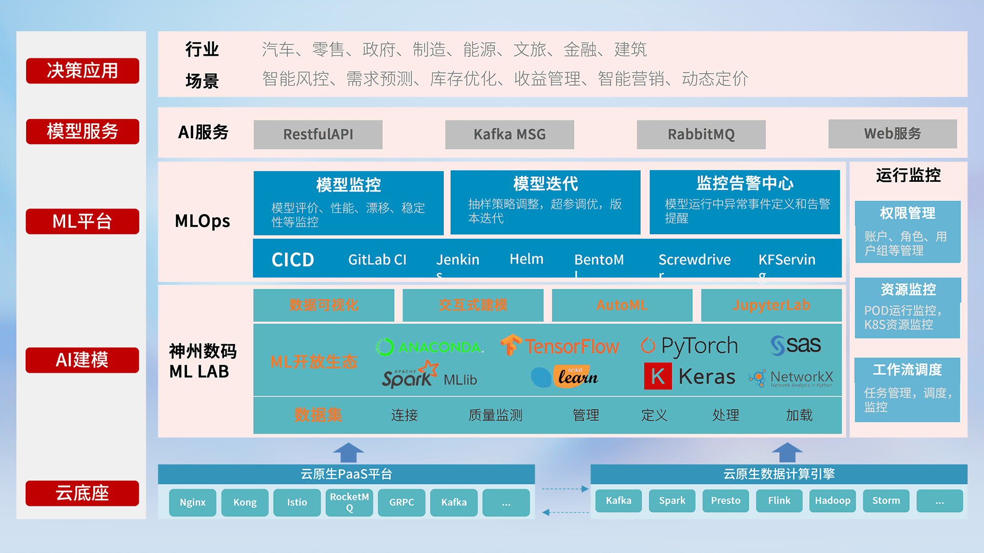 数据+模型双引擎驱动,,面向智能服务场景,,,,快速灵活利用AI技术,,,,支持业务决策,,助力企业智能化转型破局。。